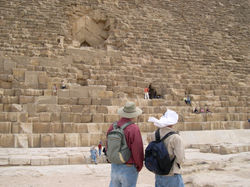 The immensity of the pyramid isn't realized until you are standing at the base or on the face. The granite blocks are huge and 2 million of them had to be moved and precisely put into place to create the Great Pyramid. Still today, the construction seems an impossibility by modern standards.